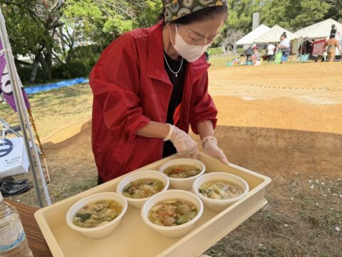 そして、感謝祭の目玉は、温かいちゃんこ鍋のふるまいです。昨年のイベントでは500人前を用意したところ、あまりの大盛況で一瞬で無くなってしまったため、今年は気合を入れて、寸胴を7つ用意し、先着1000人前を準備されたとのこと。