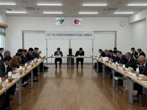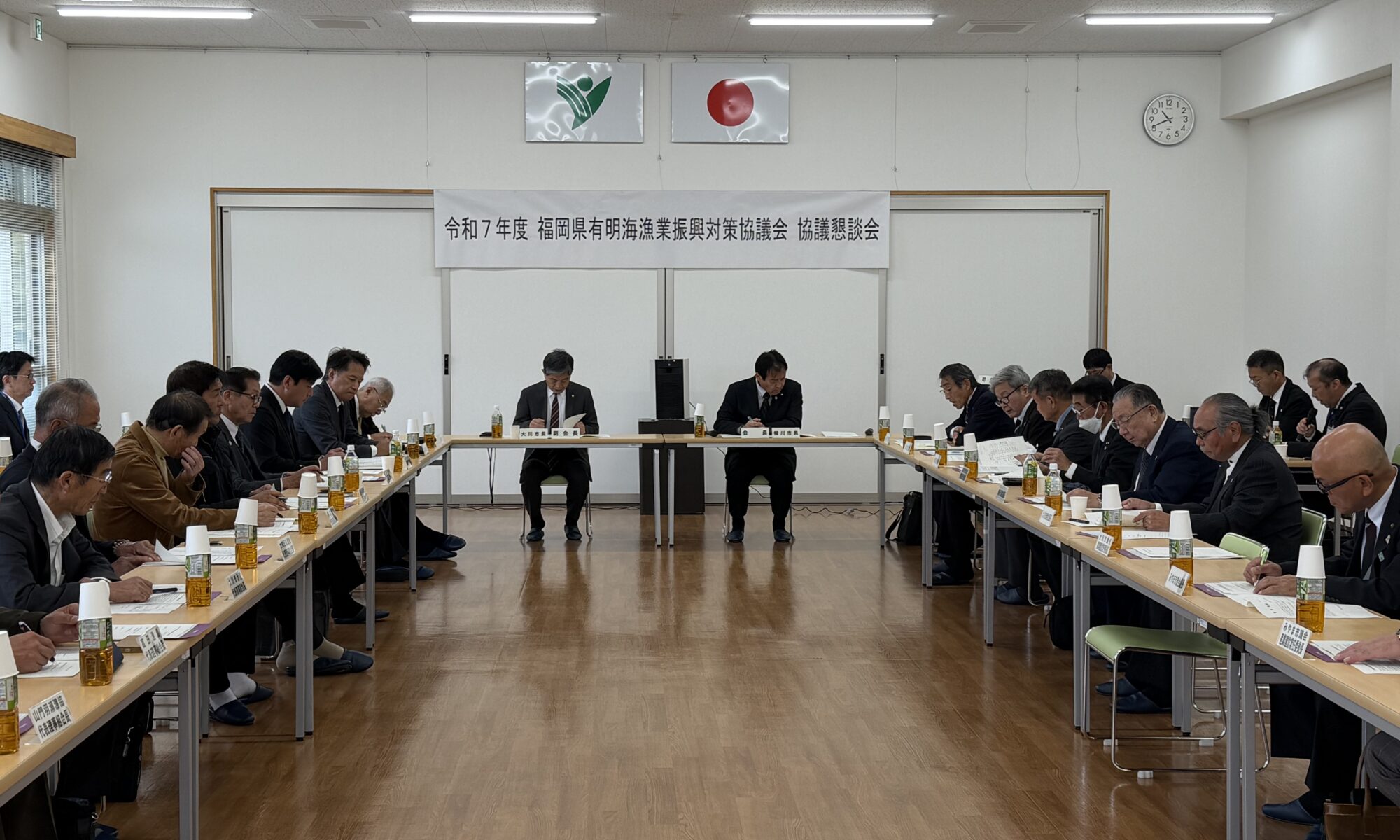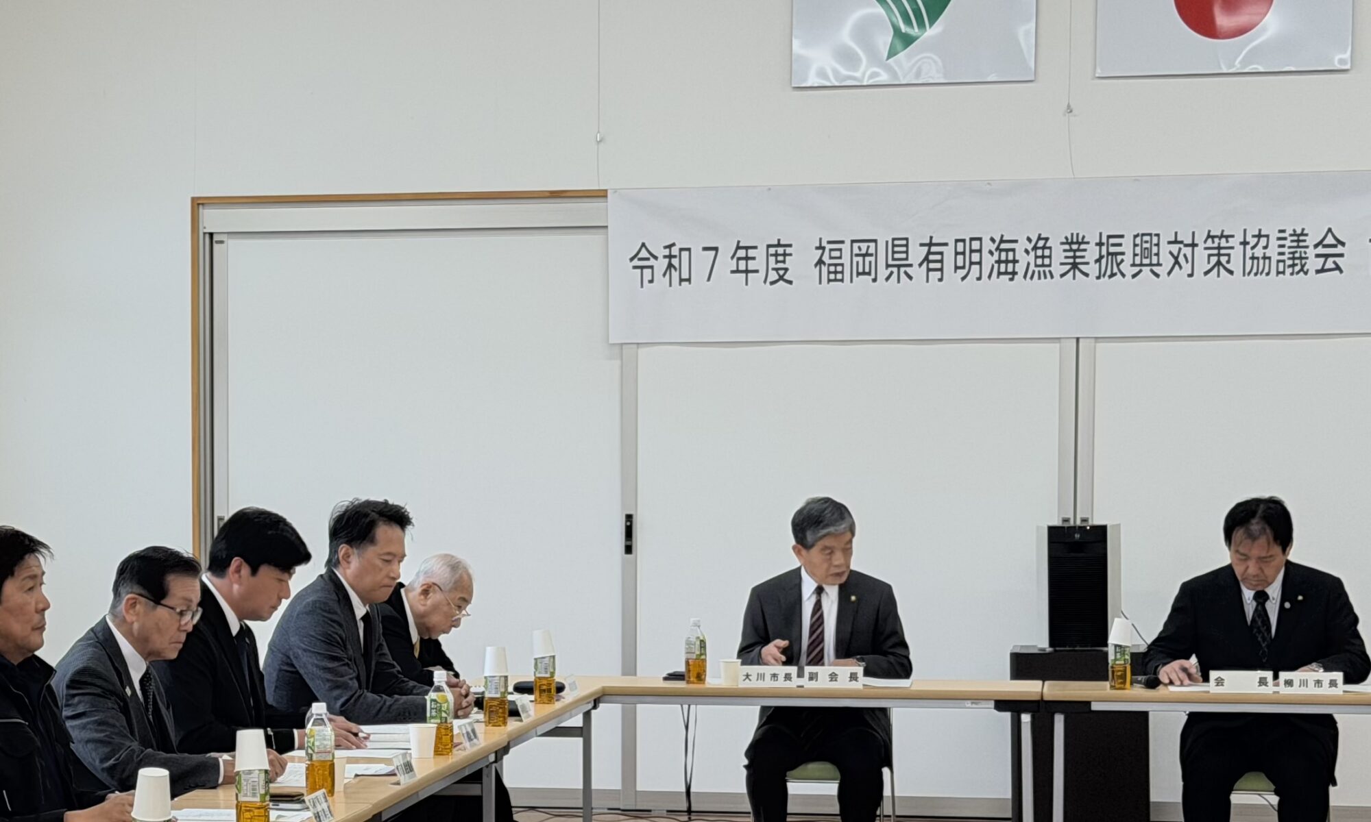 令和7年11月11日、福岡県有明海漁業振興対策協議会が開催され、有明海の水産業を次世代へ確実に引き継ぐため、福岡県に対して提出予定の9項目の重要要望事項(案)について審議が行われました。