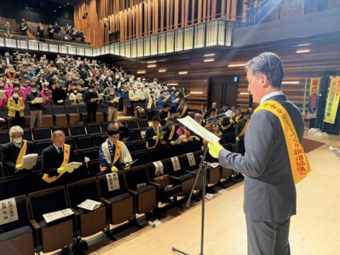柳川市民文化会館「水都やながわ」にて開催された「令和8年度 柳川市・みやま市暴力団追放総決起大会」に出席いたしました。 会場には、両市の地域住民、事業者、警察、行政関係者などが集結し、暴力団のない安全で安心できるまちづくりに向けて結束を固めました。