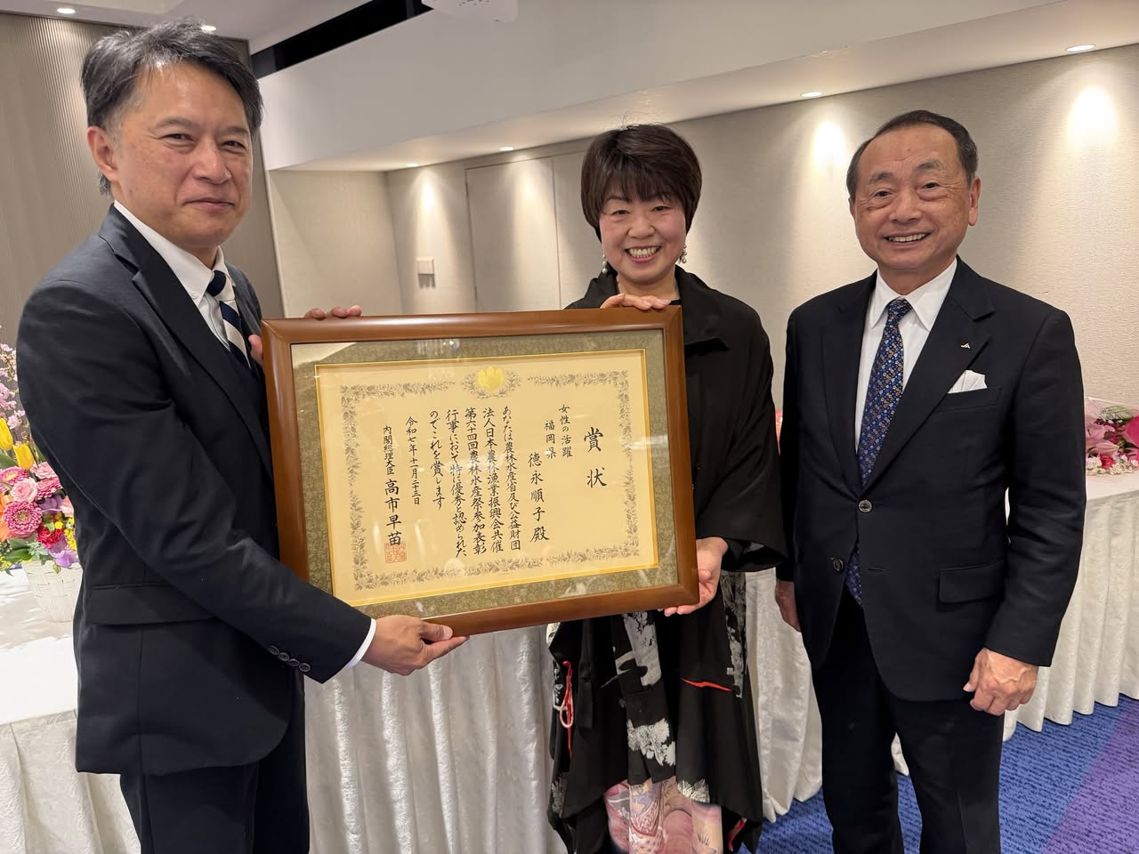 みやま市農業委員会会長でもある 徳永順子さん が、第64回農林水産祭り「女性の活躍」部門で、最高位となる 🏆内閣総理大臣賞🏆 を受賞され、その祝賀会に参加してまいりました。